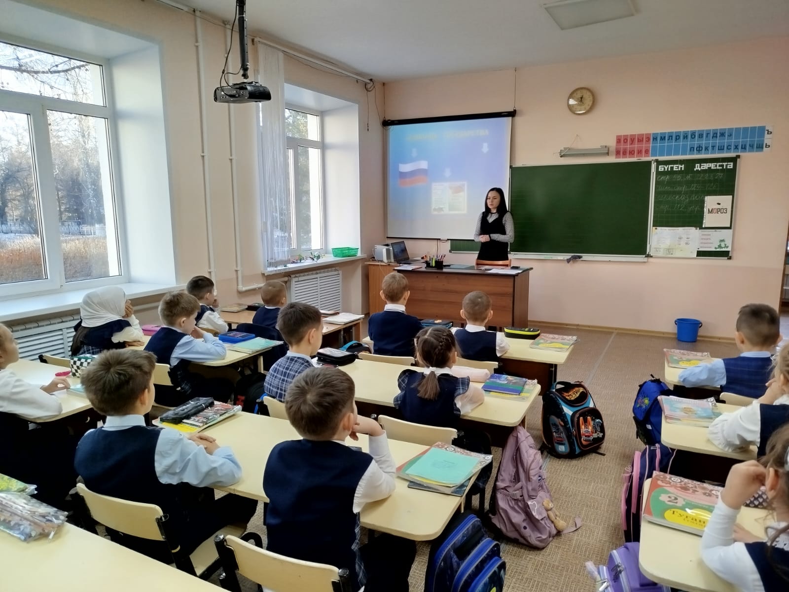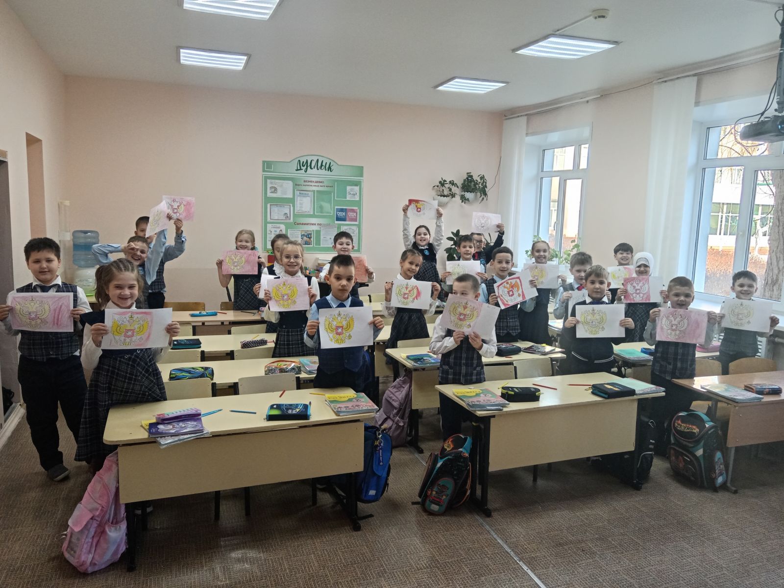 В 2а классе советник директора провела тематическое занятие, посвящённое Дню Российского герба, с целью воспитания у детей чувства любви и гордости за свою страну. Учащиеся вспомнили символы России — флаг, гимн и герб.
