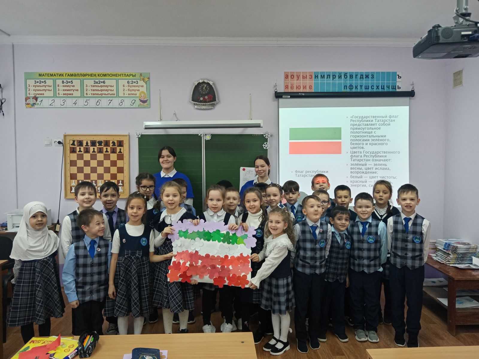 На внеурочной деятельности первоклассники нашей гимназии познакомились с Государственным флагом Республики Татарстан и его значением. Учащиеся узнали о цветах и символах флага, а также о том, какую историю и ценности он олицетворяет. В конце занятия ребята с энтузиазмом выполнили флаг Республики Татарстан. Это занятие помогло первоклассникам не только расширить свои знания о республике, но и развить творческие способности, а также укрепить патриотические чувства. Мы гордимся нашими юными Орлятами России и их стремлением узнавать новое.