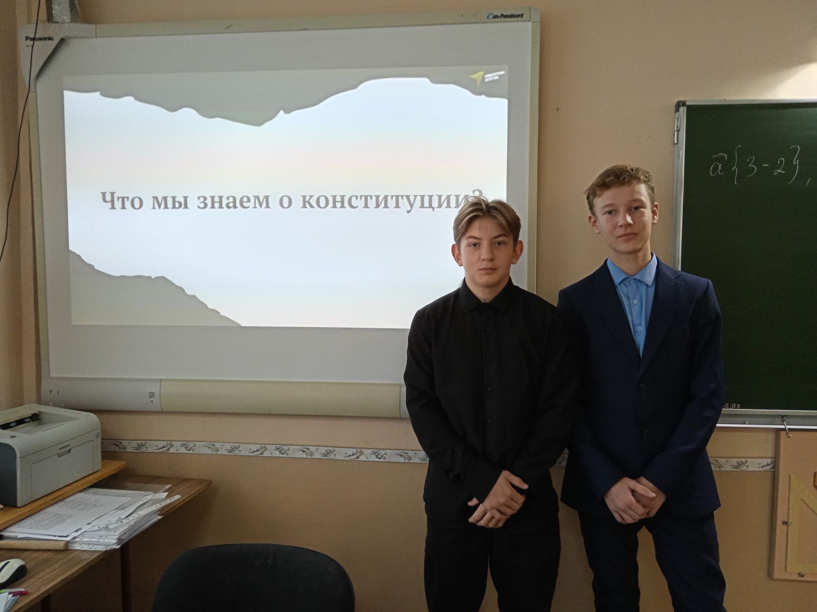 Советник директора провела ряд мероприятий, приуроченных ко дню Конституции. В 1-2 классах рок знакомства с символами РФ, в 7 классе была проведена викторина «Что мы знаем о конституции?».