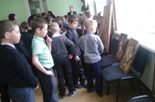 12.05.17 –в гимназии учащиеся 2В класса имели возможность встретиться с художником Карасевым Н.В. Ребят восхитили работы художника – резьба по дереву. Николай Владимирович рассказал о каждой своей работе представленной на выставке в гимназии. Ребята узнали в картинах свой город.