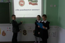 8 нче февраль көнне 3 а классында(класс җитәкчесе Галимова В,Л.) парламент дәресе узды. Укучылар "Законнар кая туа?" дигән сорауга җавап эзләделәр. Презентация карадылар .Үзләре өчен күп яңалык алдылар. Дәрес азагында викторина сорауларына җавап бирделәр.