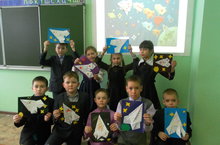 2 а класс и 3 а класссовместно провели классный час на тему "Ю.А. Гагарин-наш герой". Отвечали на вопросы. В конце классного часа провели конкурс рисунков.