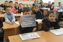 Учащиеся 5б класса кл. руководитель Залялова И.И. провели классный час в 1б классе на тему «Доброта спасет мир».