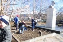 6а класс с классным руководителем Закировой З.М.в рамках акции «Дорога к обелиску» прибрались возле памятника татарскому революционеру и общественно-политическому деятелю Муллануру Вахитову.