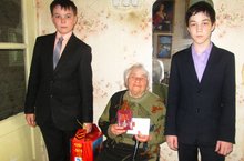 Учащиеся 6а класса с классным руководителем Закировой З.М. посетили труженицу тыла Белебородову Лилию Алексеевну. Вручили медаль 70-летия Великой Победы и подарки.
