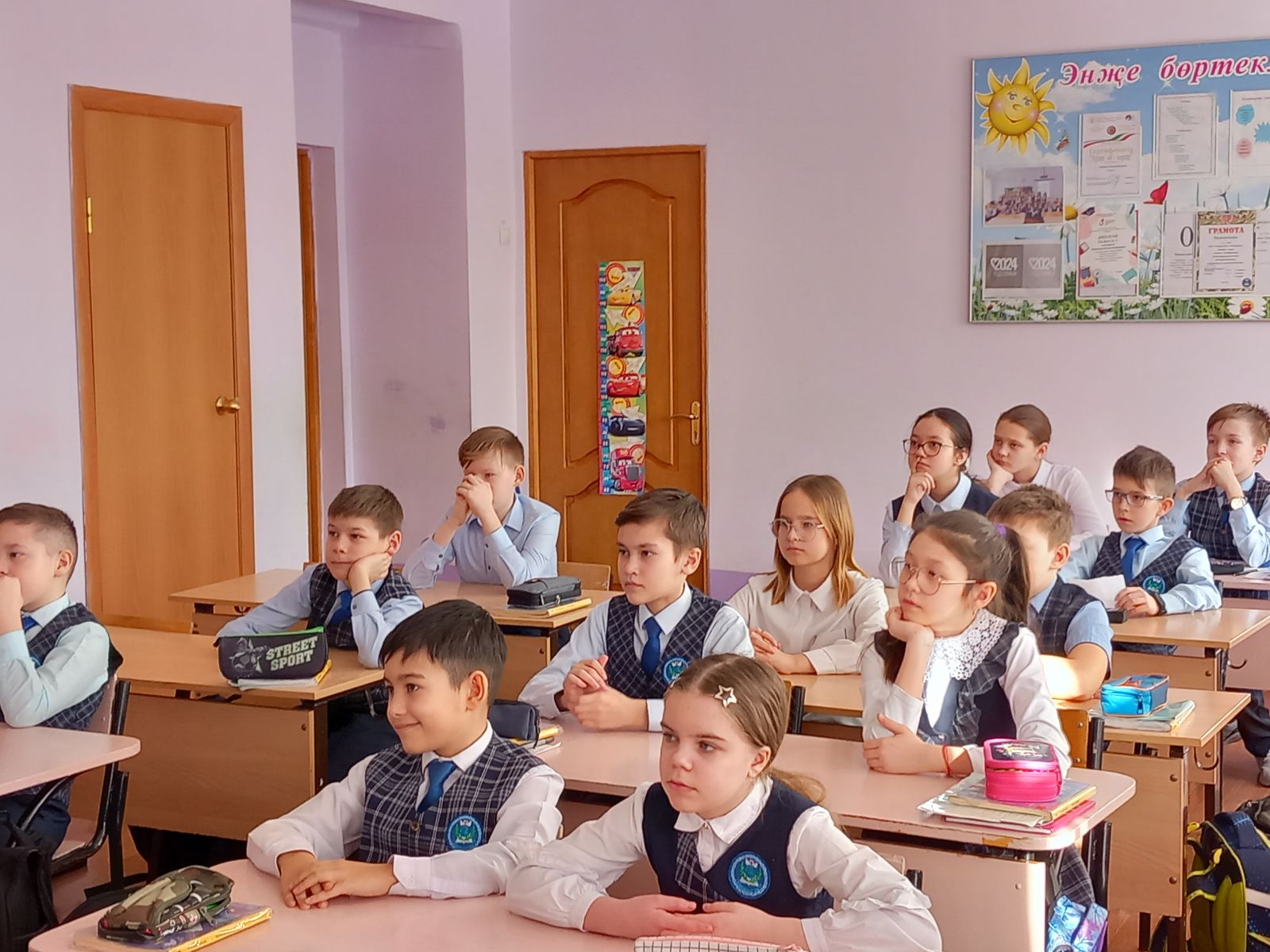 Бәйге-бәйге инде. Әлбәттә, җиңүчесе дә булырга тиеш. Иң оста диеп 1 нче А сыйныфыннан Шәрәфетдиноа Зәринә, 2 нче Асыйныфыннан Сәгдиева Азалия, 2 нче Б сыйныфыннан Закирова Ильвина,2 нче В сыйныфыннан Сенюшин Ярослав, 3 нче А сыйныфыннан Рәхимов Әмир,4 нче А сыйныфыннан Гарифуллин Камил танылды. Алар 1 нче урын алды. Шулай ук 2нче, 3 нче урыннар билгеләнде. Аларның укытучыларына зур рәхмәт. Телне шулай бергәләшеп саклаганда гына киләчәккә өмет бар. Бәйрәм азагында гөрләтеп “Туган тел” җырын башкардылар. Бәйрәмдә катнашкан һәр бала диплпомнар белән бүләкләнде. Кыскасы, бәйрәм бик күңелле үтте.