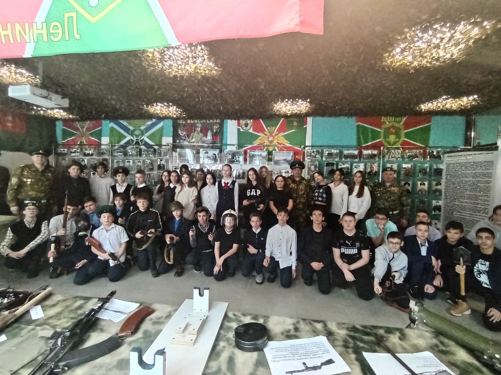 В рамках месячника военно-патриотического воспитания учащиеся 7в,7б,8а,8б,8в классов посетили мобильный музей-выставку «На защите границ», который находится в Молодежном центре «Высота». Ребят узнали много интересного об особенностях службы пограничников, об экипировки и вооружения. Также учащимся разрешили потрогать экспонаты руками и примерить элементы экипировки. Ребятам остались восторге от похода в данный музей.