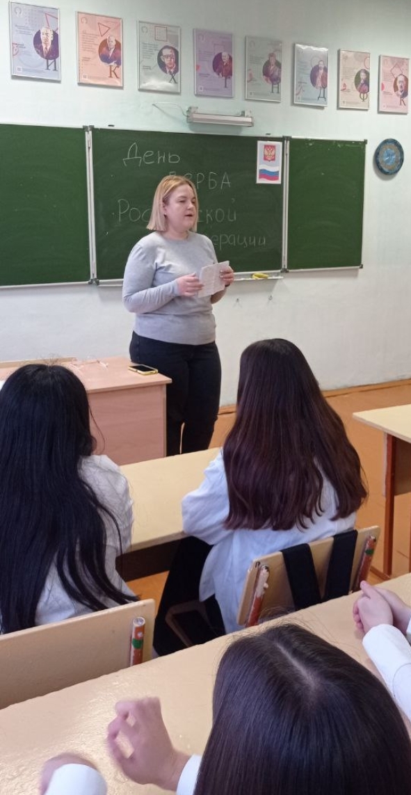В рамках мероприятия приуроченной ко Дню государственного герба Российской Федерации 7 в классе специалист по социальной работе отделения социальной помощи семье и детям КЦСОН "Исток-Башлангыч" Туктарова Анастасия Сергеевна рассказала об истории создания герба России, его символическом значении и эволюции на протяжении веков. Особое внимание было уделено современному толкованию символов и их роли в укреплении единства и национальной гордости. Программа включала интерактивный элемент — "Своя игра" - "Символы России", где учащиеся смогли закрепить свои знания и узнать интересные факты о государственных символах страны.