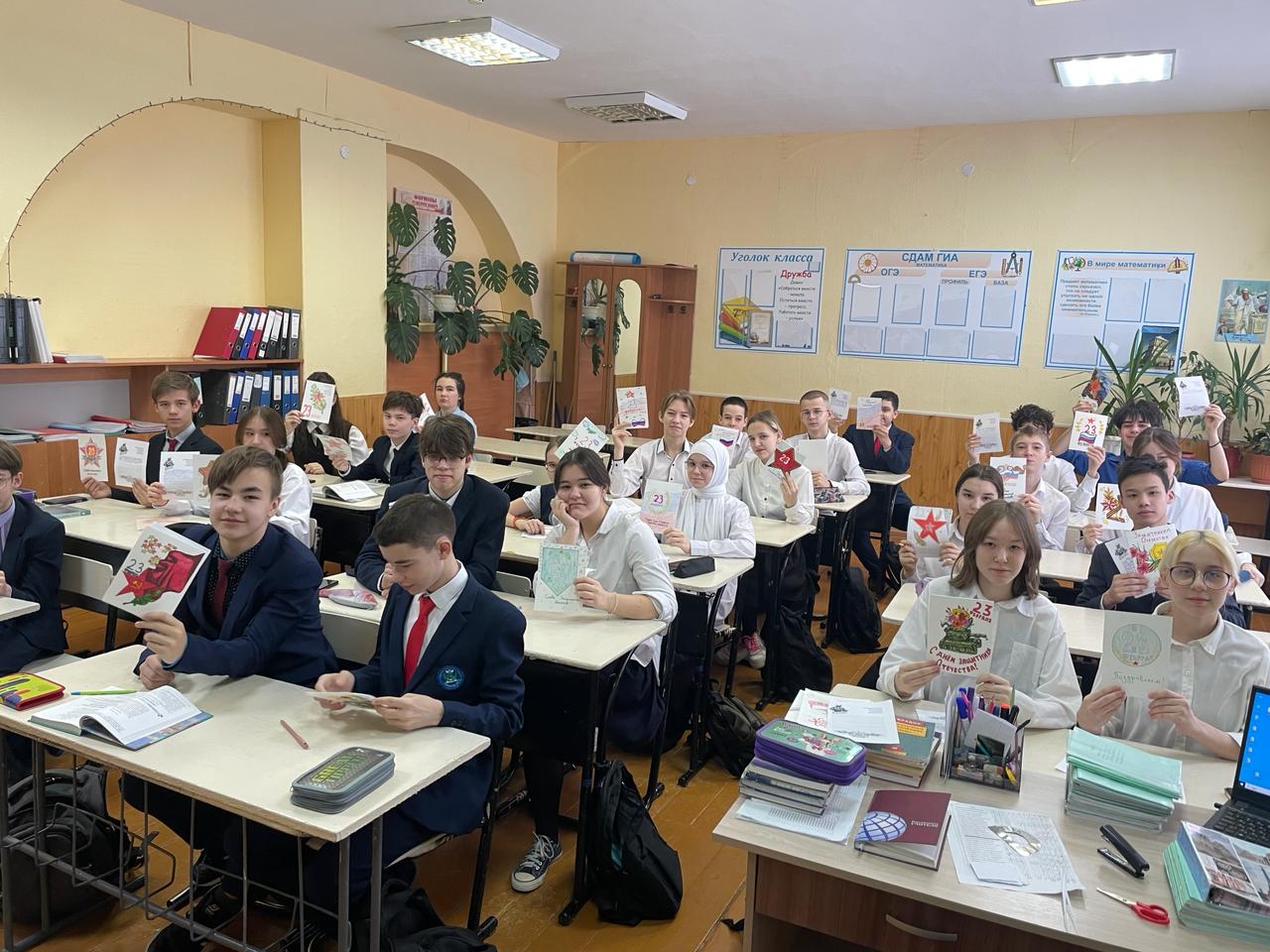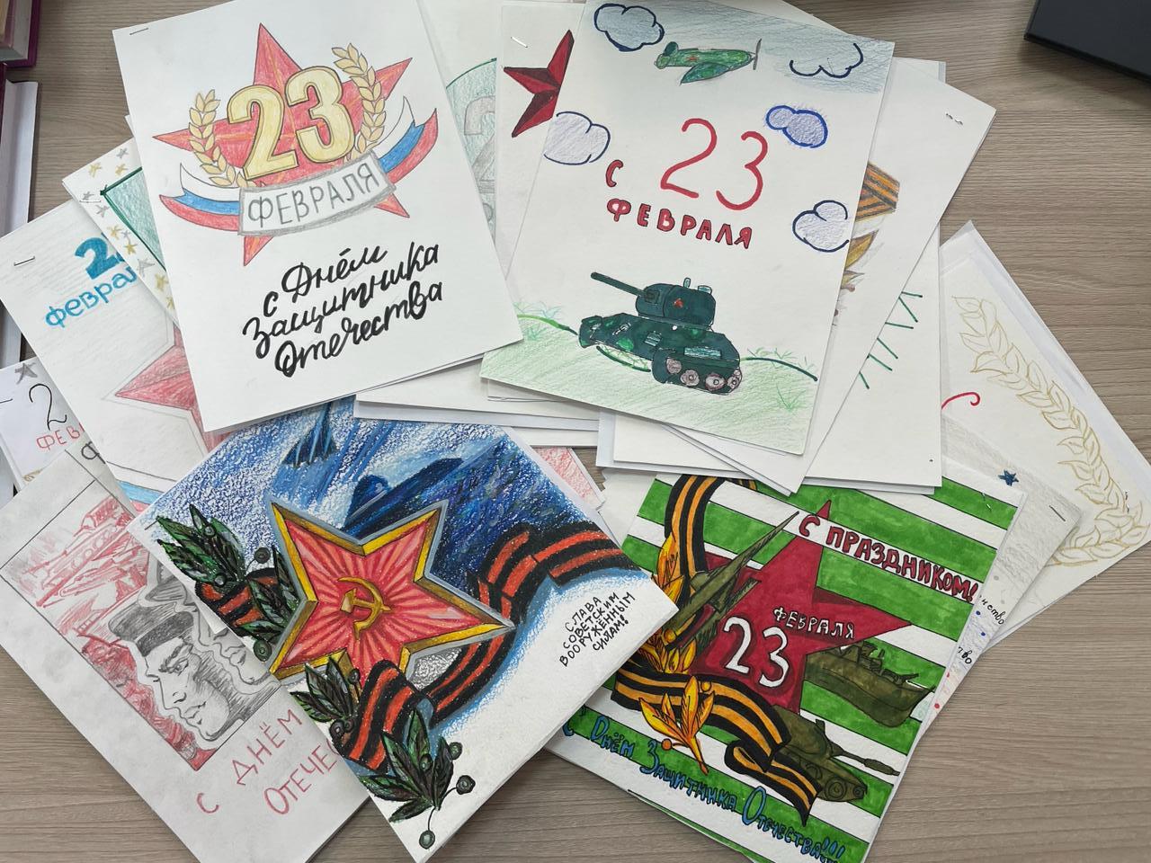 В рамках месячника военно-патриотического воспитания, посвящённого Дню защитника Отечества, прошла акция "Письмо солдату» . учащиеся 8а класса (кл.руководитель Каримова А.А.) приготовили письма открытки солдатам с поздравлением