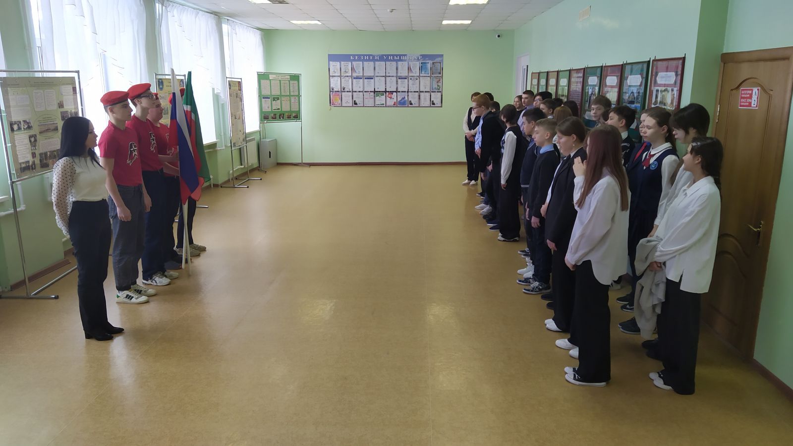 Очень трогательным моментом на мероприятии было исполнение гимна РФ, РТ и принятие клятвы юнармейцев: всегда быть верным своей Родине, соблюдать устав «ЮНАРМИИ», следовать традициям доблести, отваги и товарищеской взаимовыручки, защищать слабых, стремиться к победам в учёбе, спорте, чтить память героев.