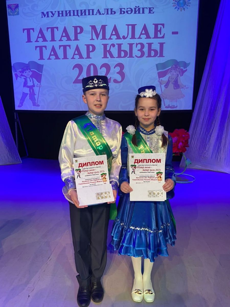 12 апрель конне Мәдәният сараенда милли мәдәниятләр һәм гореф гадәтләр елына багышланган “Татар малае- татар кызы 2023” муниципаль бәйге үтте. Бәйгедә татар телен камил белгән 8-12 яшьтәге 10 бала катнашты. Балалар җыр-биюдә, нәфис сүз осталыгында сынаштылар. “Татар малае - татар кызы 2023” бәйгесе җиңүчеләре дип гимназиянең 4а класс укучылары Хөсәенов Аяз һәм Гиматдинова Рената билгеләнде. (җитәкчеләре Минязова Ф.Ә, Ахметшина Ф.З.). “Иң иҗади пар” номинациясенә гимназиянең 1а класс укучылары Галимов Марат һәм Сагдиева Азалия (җитәкчеләре Галимова В.Л., Шәрәпова З.Л.) ия булдылар.