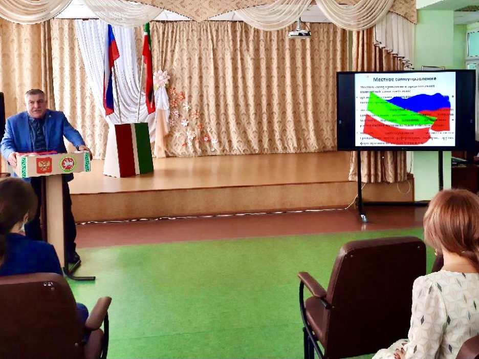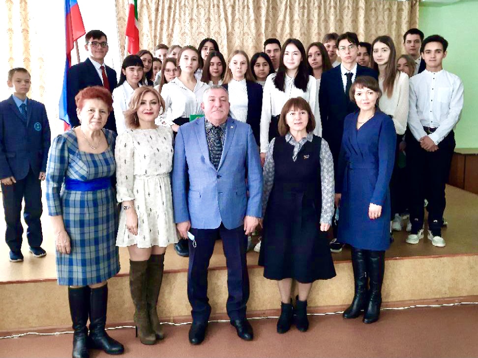 В Гимназии №11 14.02.2022г. был проведен парламентский урок «Я – Гражданин. Мои права и обязанности», посвященный 30-летию Конституции РТ. На уроке присутствовали Хусаинов Рягат Галиагзямович, мэр города Лениногорска, депутат муниципального образования «город Лениногорск», округ № 11; Рафикова Гульфира Мазитовна депутат муниципального образования «город Лениногорск», округ №15,заместитель главы г.Лениногорск; методист УО Сидорова Югина Вячеславовна. На уроке учащиеся 10-11 классов познакомились с историей создания Основного закона республики, содержанием Раздела II «Основные права, свободы и обязанности человека и гражданина», Рягат Галиагзямович очень подробно рассказал о деятельности местного самоуправления.