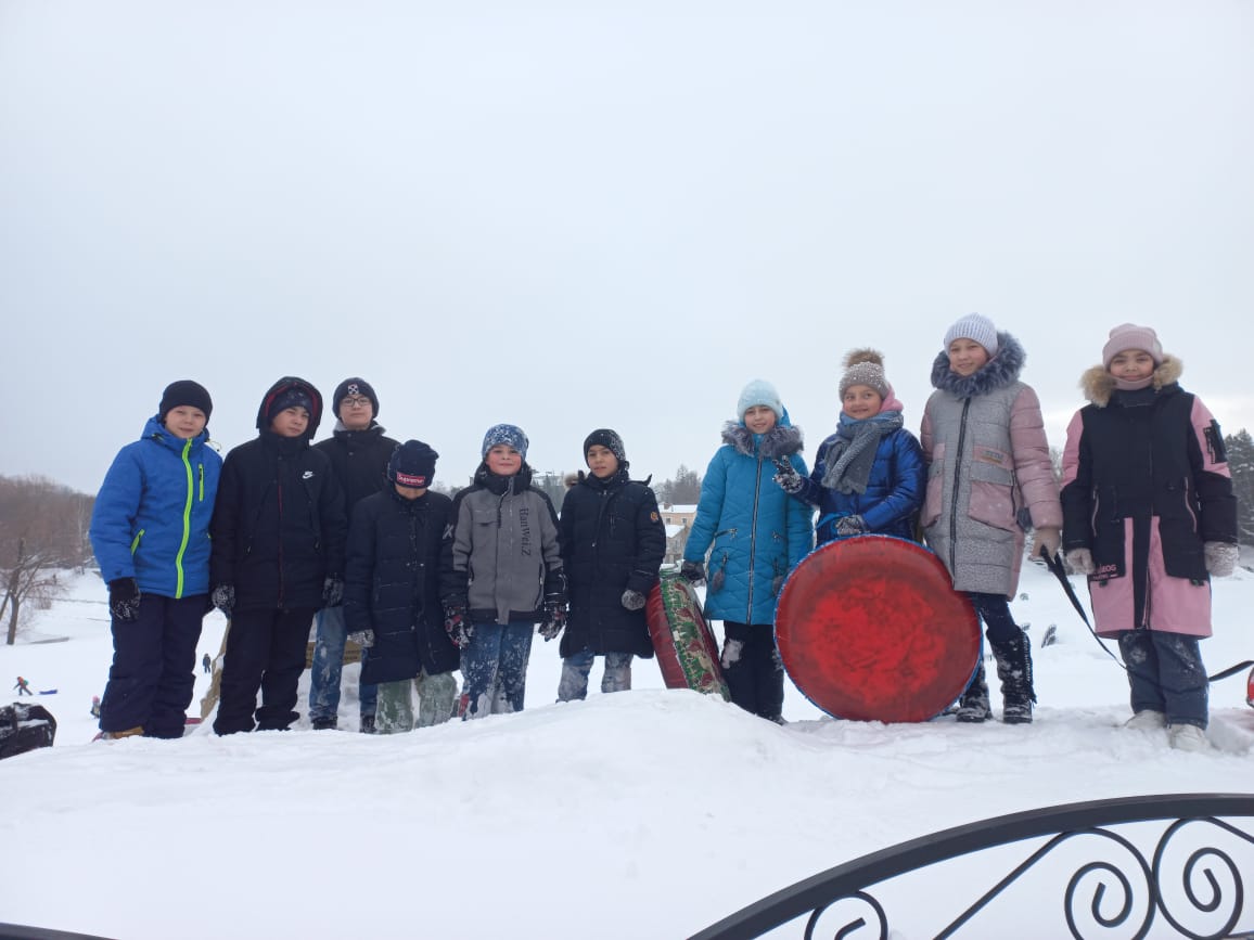 День здоровья ученики 5 А класса весело и дружно провели в парке и на стадионе, катаясь с горки на ледянках и ватрушках.
