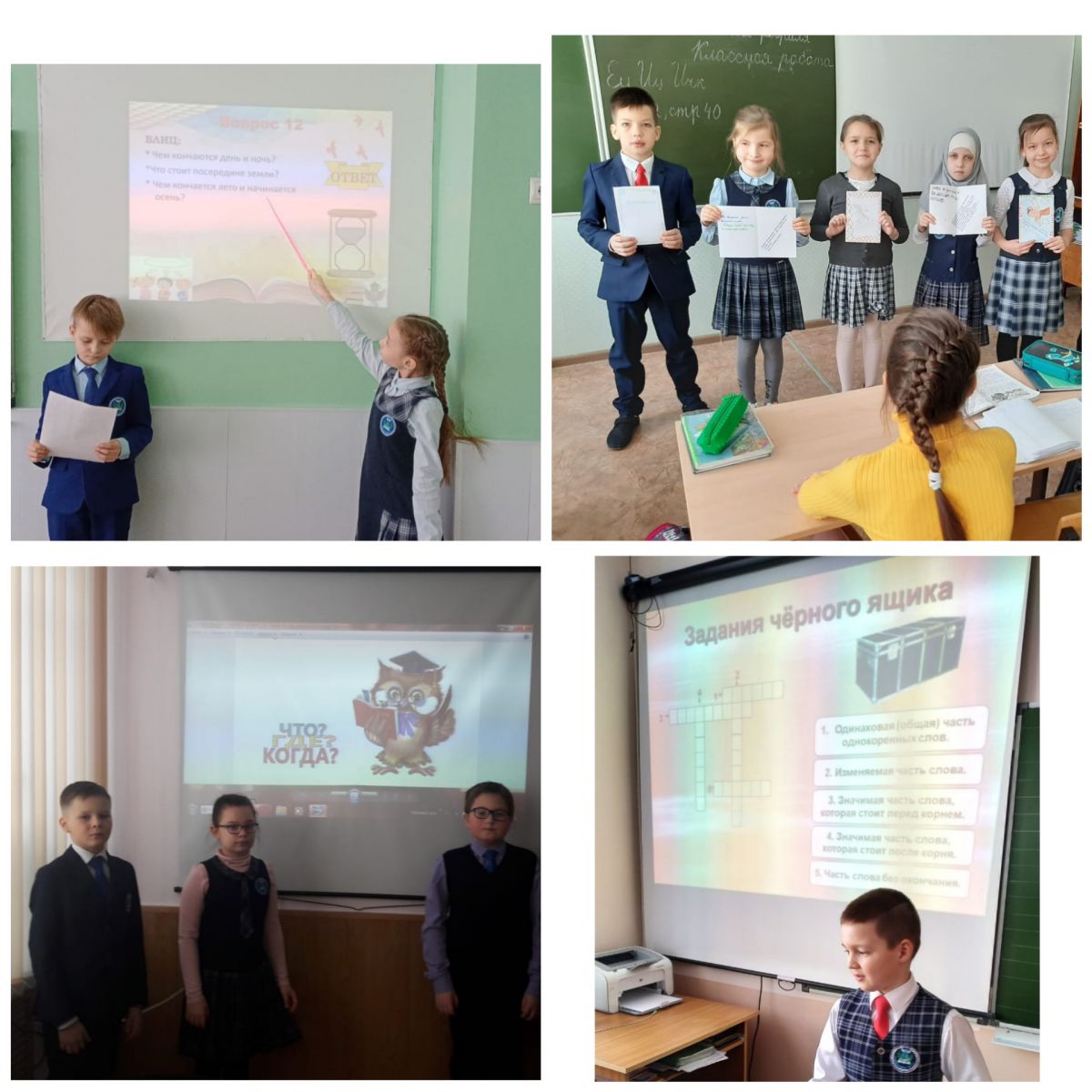 11 февраля 2021 года в начальной школе МБОУ «Гимназия №11 г. Лениногорска» была проведена языковая игра «Что? Где? Когда?». Для игры были отобраны наиболее интересные вопросы. Задания составлялись на основе изученного материала, так же присутствовали задания творческого характера. Мероприятие целей достигло, воспитательные, развивающие задачи реализованы. Игра способствовала расширению кругозора не только в области лингвистики, но и в других областях: естествознании, географии и биологии, помогла творческому развитию личности школьника и активизировала его познавательную самостоятельность.