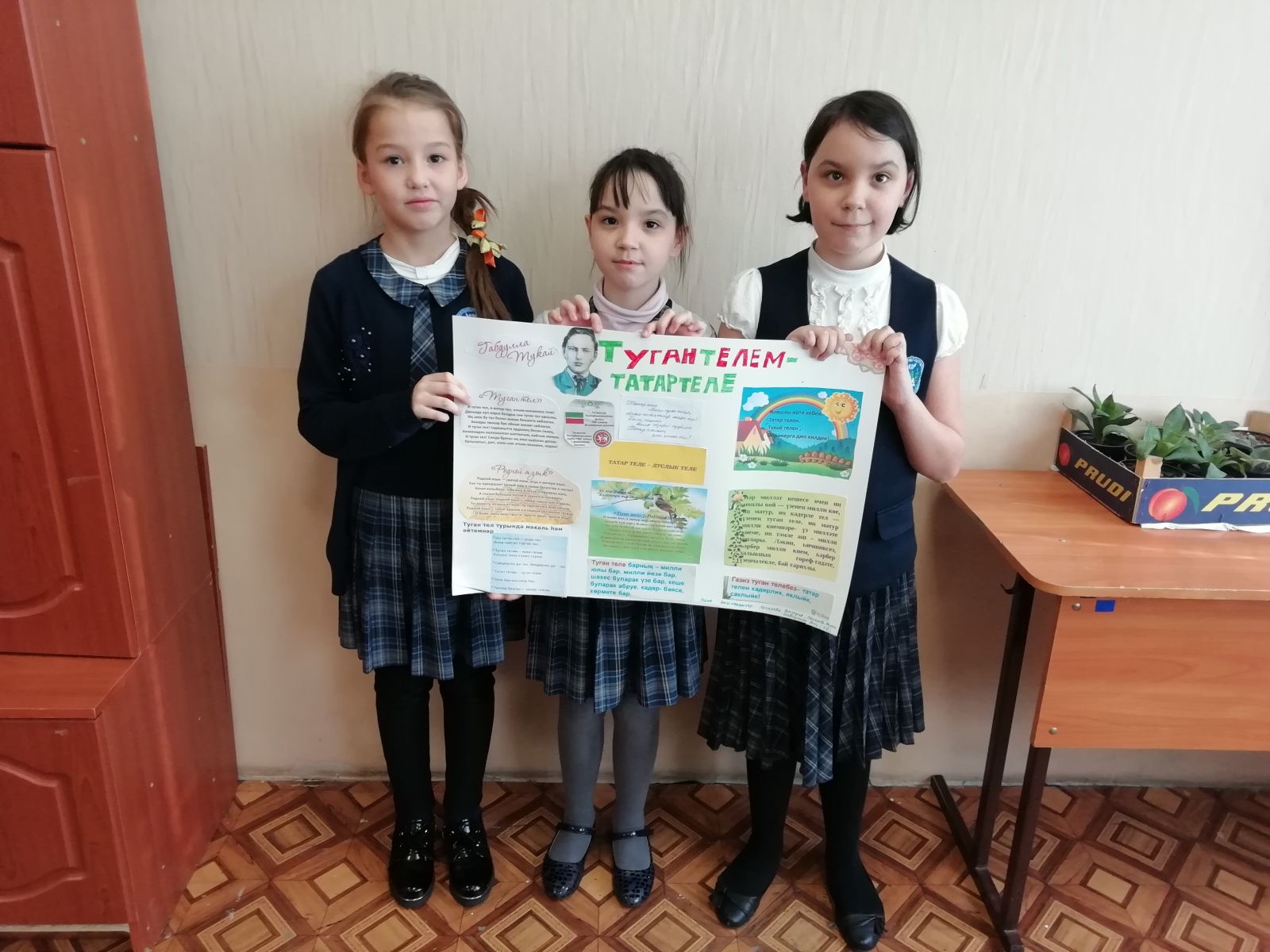В рамках месячника, посвященного Международному дню родного языка, 27 января в нашей школе прошла защита проектов на тему «Туган телем-иркә гөлем». В этом мероприятии участвовали ученики 4Б класса. Они предсавили свои проекты в формате стенгазет.