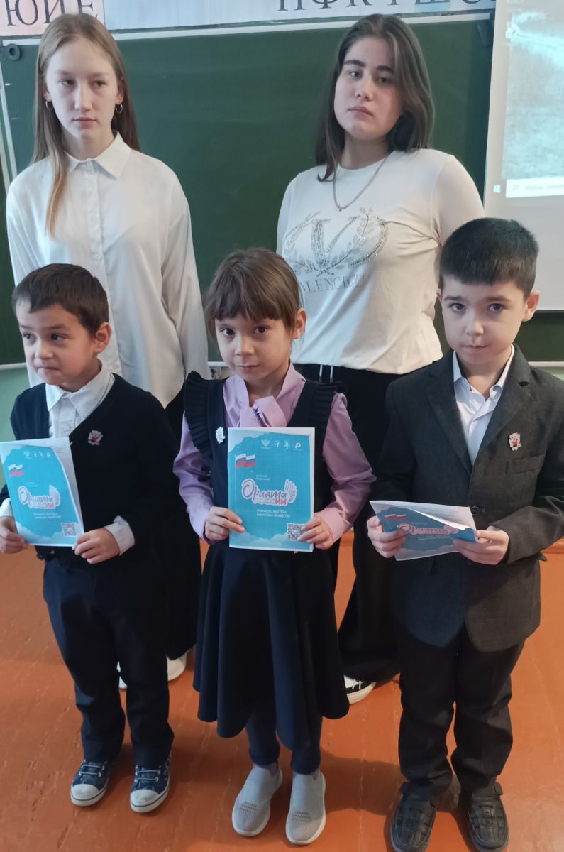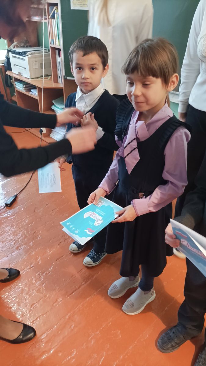 Вручили первоклассникам удостоверение и значки Орлята России.