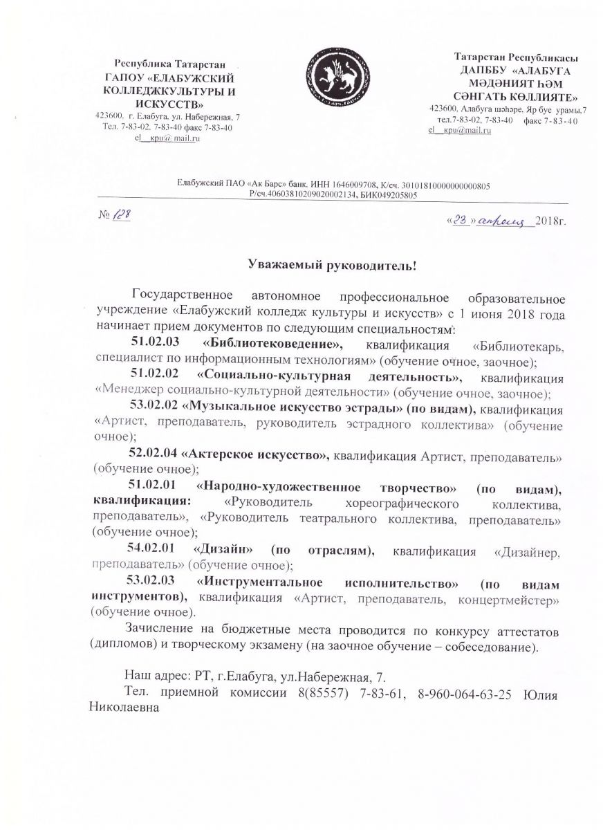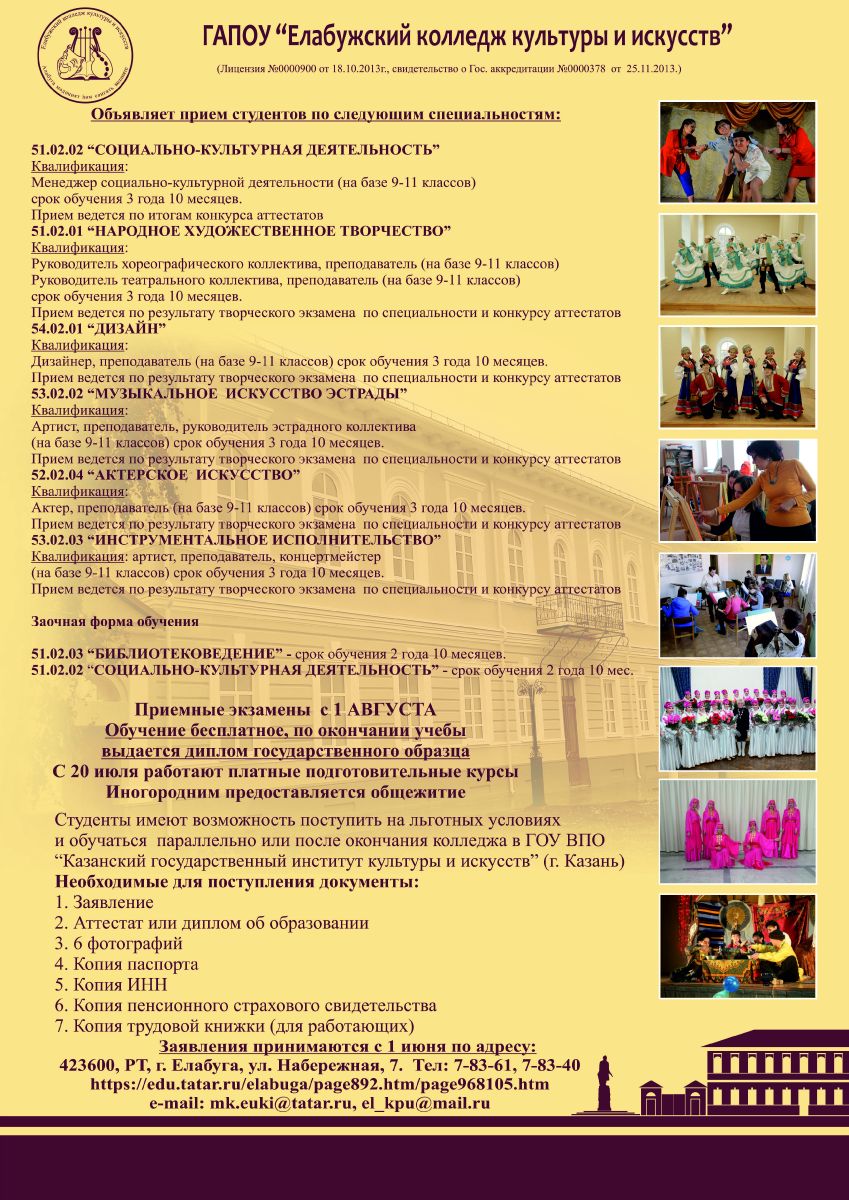 - ГАПОУ "Елабужский колледж культуры и искусств" 26.04.2018