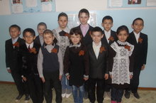 Учащимся начальных классов были розданы георгиевские ленточки. Таким образом, был дан старт Всероссийской акции «Георгиевская ленточка». Дети прикрепили Георгиевскую ленточку - условный символ военной славы к одежде, публично демонстрируя свое уважение к воинам, сражавшимся за Отечество, всенародную гордость за Великую Победу;