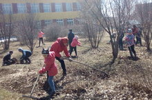 Бүген мәктәбебез территориясен җыештыру эшләрен башлап җибәрдек.