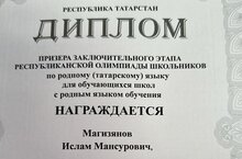 Булганнан бар да була шул! Бүген укучыбыз Магизянов Ислам татар теле буенча Республика олимпиадасының йомгаклау этабында уңышлы чыгыш ясап, грамота белән бүләкләнде. Укытучысы Сабирзянова Гөлия Хаҗип кызын һәм 8 нче класс укучысы Исламны зур җиңү белән тәбриклибез.