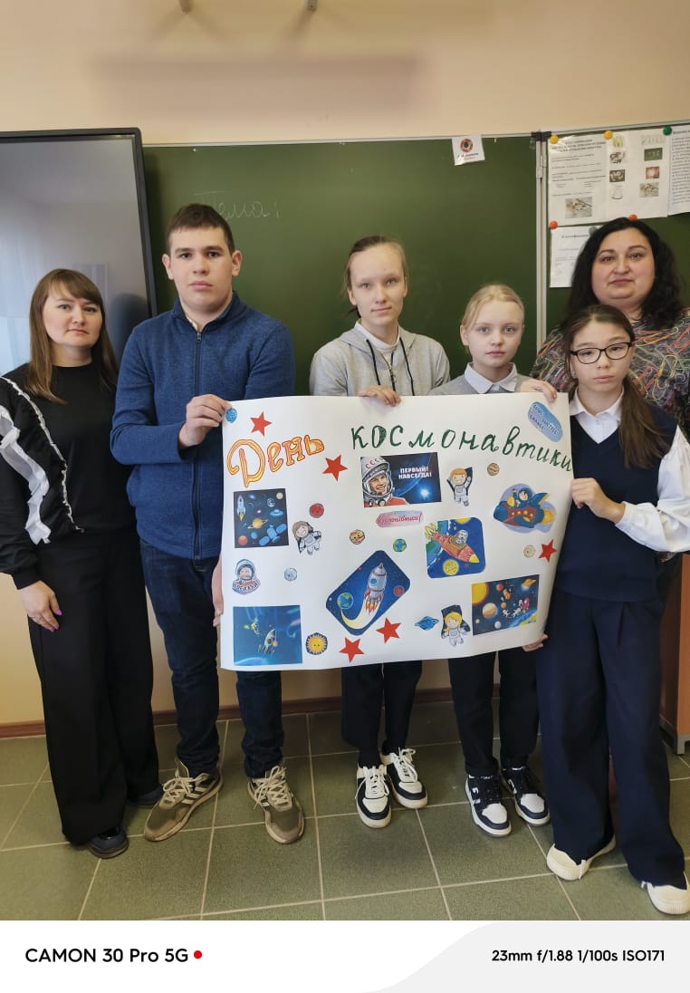 12 апреля 1961 года советский космонавт Юрий Гагарин на корабле "Восток-1" стартовал с космодрома "Байконур" и впервые в мире совершил орбитальный облёт планеты Земля. С тех пор этот день в России отмечают как День Космонавтики, а в мире - Международный день полёта человека в космос. В преддверии Дня Космонавтики учителями Гамза О.Р. , Загертдиновой Г.Г. и учениками 7 класса сделали стенгазету "12 апреля - День Косманавтики" . В процессе изготовления стенгазеты ребята узнали о первом космонавте Юрии Гагарине, космических аппаратах, кометах и метеоритах.