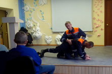 В нашей школе прошла встреча со спасателями МЧС Куликовым В.В. и Кузьминым М.Ф. Они познакомили учащихся 5-9 классов с альпинистским снаряжением, продемонстрировали работу гидравлических ножниц, объяснили ребятам как вести себя на водоемах, как спасать утопающего, как помочь пострадавшим во время сильного кровотечения. В конце беседы спасатели отвечали на вопросы учащихся. Ребята остались довольны интересной беседой спасателей.
