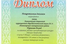 7 сыйныф укучысы Давлетгараев Ильшат (кл. җит. Гайнанова Алзира Ленаровна) муниципаль конкурста катнашып “За популяризацию творчества Г. Тукая” дигән номинация буенча грамотага лаек булды.