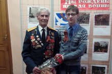В предверии празднования 70-летия победы в Великой Отечественной войне учащиеся 8"А" класса вместе с классным руководителем Перовской К.Р. поздравили ветерана Степанова Н.Н.