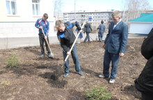 Учащиеся и педагоги нашей школы посадили деревья и кустарники на территории школы. Акция посвящена 70-летию Победы.
