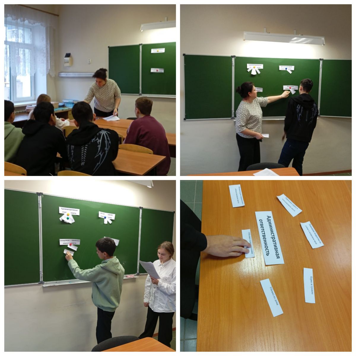 Обучающиеся рассмотрели, какие виды ответственности и наказание для несовершеннолетних существуют. Немного помечтали: представили, что все присутствующие - юристы. Перед обучающимися была поставлена задача, определить виды юридической ответственности в различных нарушениях. Вместе разбирали, какие же причины приводят к правонарушениям?