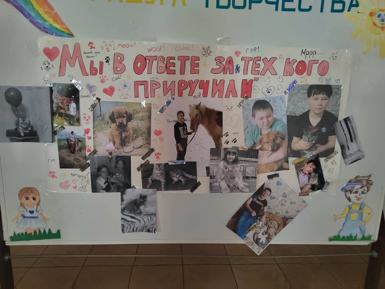 Ученики старших классов в рамках кружка "Удивительный мир природы" составили плакат о защите животных. Каждый кружковец поделился сообщением о своем любимце и рассказал как ухаживает за ним.