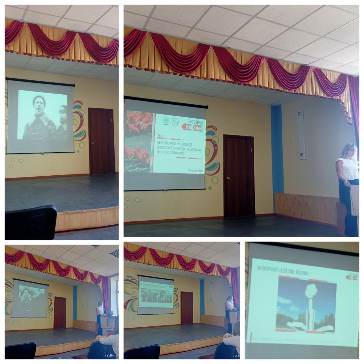 Сегодня 17 апреля тематикой "разговоров о важном" стал особенный день- День единых действий в память о геноциде советского народа нацистами в годы Великой Отечественной войны. Учитель Королева О. В. поведала учащимся о понятии "геноцид", рассказала о концлагерях города Макеевка, Крым, показала мемориалы, увековечивающие память событий войны.