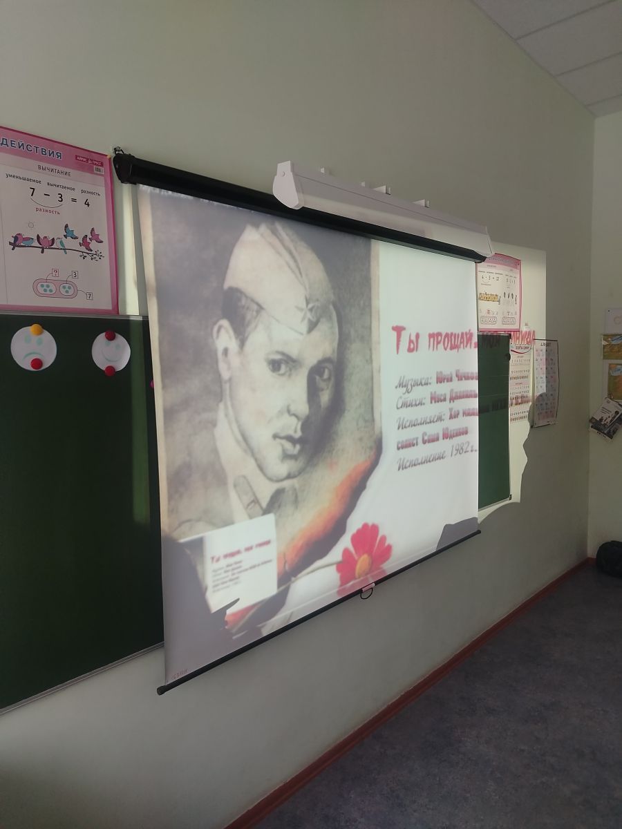 В исполнении детей прозвучали стихи поэта-героя. Героические строки непокорённого поэта, которого не сломили вражеские застенки, актуальны и сегодня. Они призывают людей помнить о тех, кто погиб, и о тех, кто отстоял мир.В конце занятия учащиеся просмотрели мультипликационный фильм «Мой пес». Мультфильм создан по мотивам стихотворения Мусы Джалиля. Через простые и понятные детям образы в нём рассказывают о сложных вещах: о верности, о дружбе и о том, как война врывается в судьбы людей.