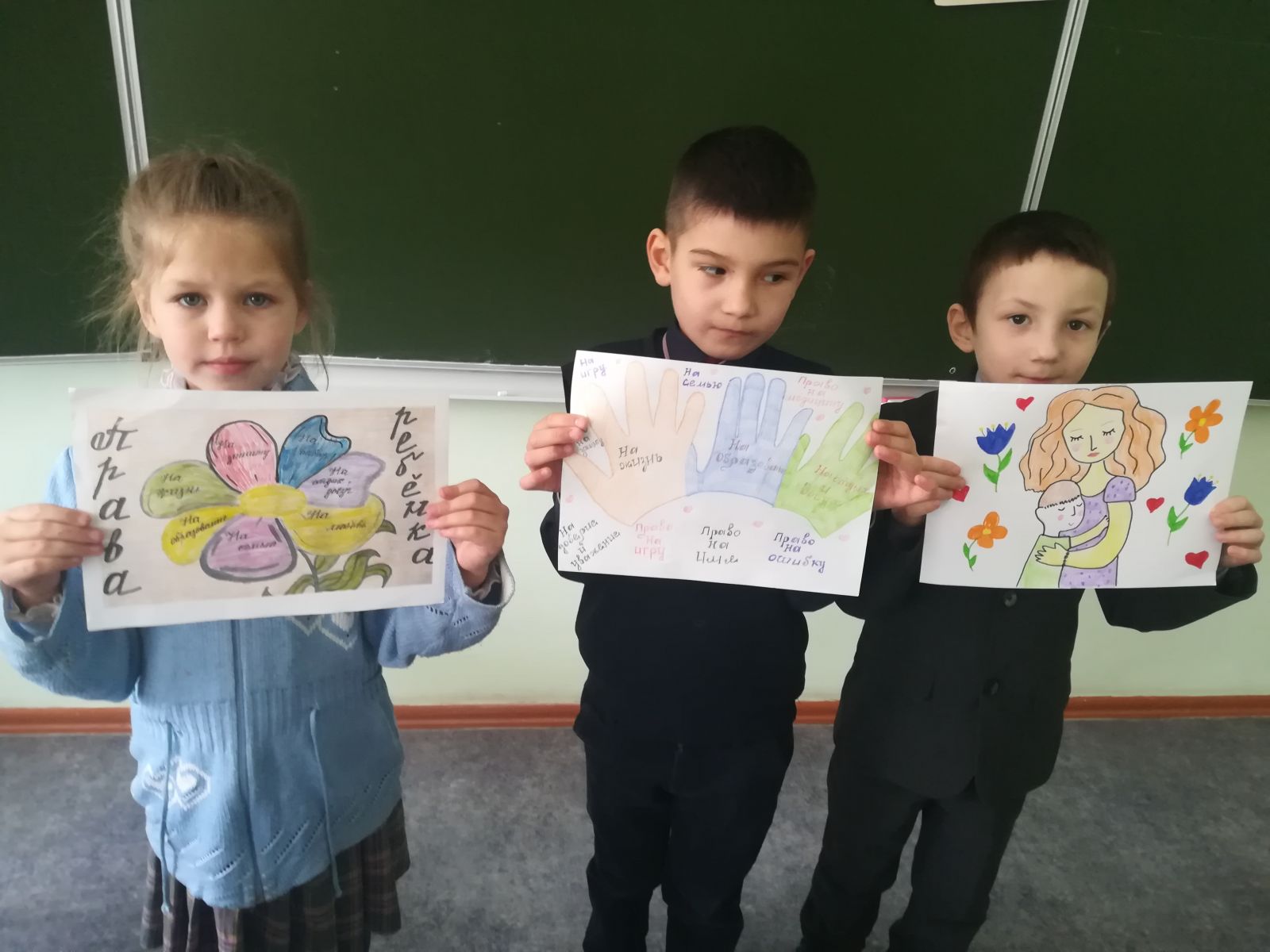 В рамках проведения Декады правовых знаний и конвенции о правах ребенка, классным руководителем 1 класса Мавриной Ю.В. был проведен конкурс рисунков на правовую тематику. Родителям учащихся были разданы буклеты «Права детей-обязанности родителей», оказана консультативная помощь по возникшим вопросам. С детьми были проведены классные часы «Мы знаем, предупреждаем, мы соблюдаем!», «Правовые знания детям». Целями классного часа познакомить детей с понятиями: «Конвенция о правах ребёнка», «право», «обязанность», через знакомство с правами и обязанностями ребенка воспитывать правовую культуру учащихс способствовать формированию у учащихся стремления знать и изучать свои права и обязанности.