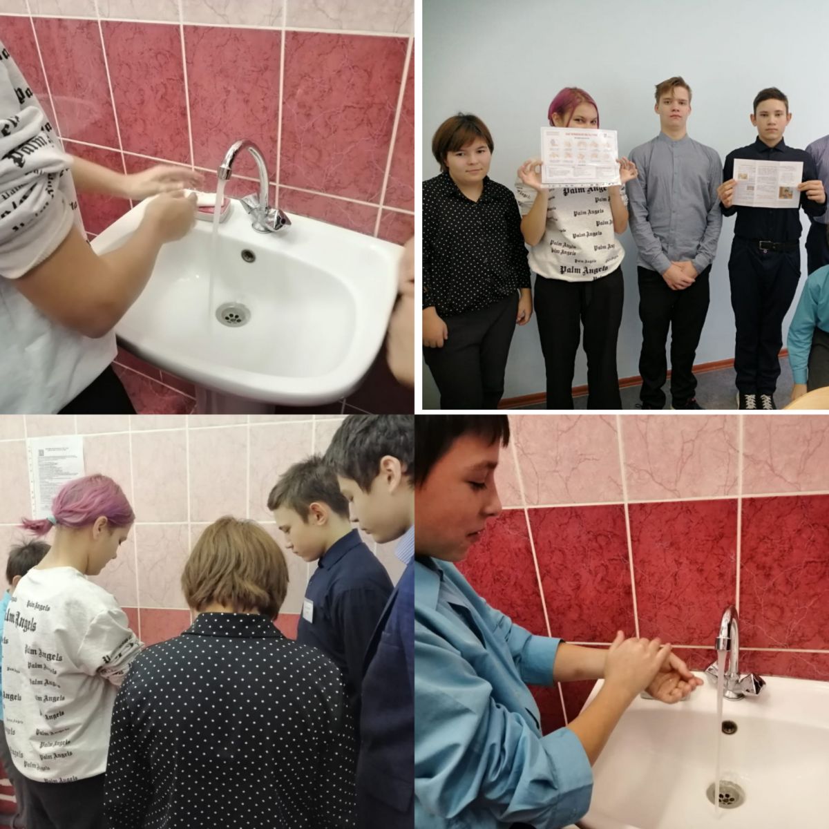 В рамках Всемирного дня чистых рук классный руководитель Перовская К.Р. показала ученикам 5 класса как правильно мыть руки. Ученики внимательно почитали брошюры, подготовленные учителем. Позже ребята по очереди смогли закрепить свои навыки помыв руки.