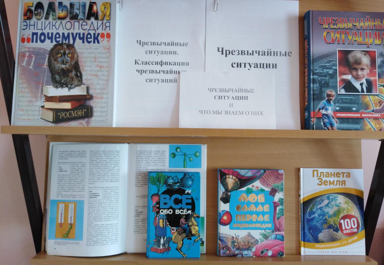 В рамках месячника безопасности в школьной библиотеке организована выставка книг "Чрезвычайные ситуации и что мы знаем о них"