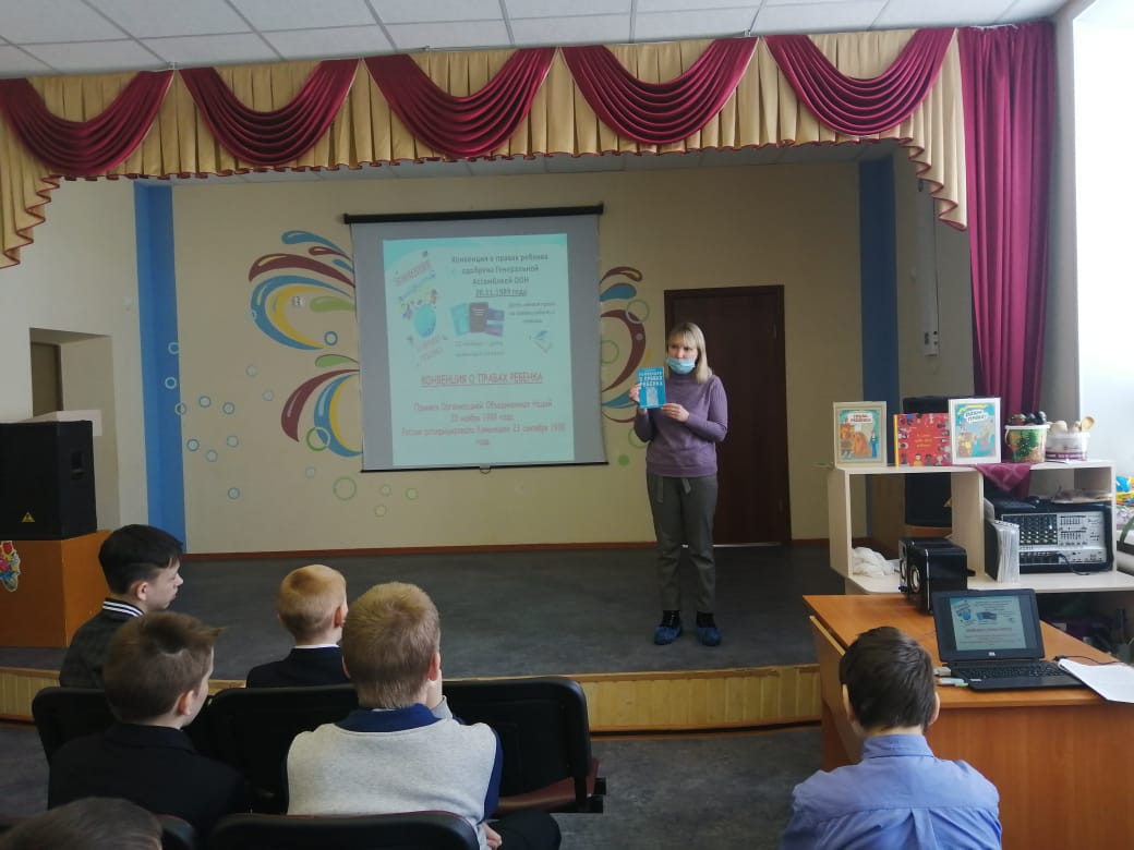 Тема: «Я гражданин! Мои права и обязанности», посвящённые 30-летию со дня принятия Конституции РТ. Занятие в 7б классе прошло в виде дискуссии с использованием презентации. В начале урока с ребятами вспомнили историю Конституции РТ, познакомились с разделом № 2 «Основные права, свободы и обязанности человека и гражданина». Изучили Календарь правовых дат. На примере рассказа А.П. Чехова «Ванька» разобрали, какие права ребёнка были нарушены. Конкурсную программу провели в виде тестирования по теме. Затем на примере сказочных героев показали, как нарушаются права человека. Закончили занятие викториной «Подумай-ка!», где ребята к пословицам подбирали нужную статью: Грамоте учиться – всегда пригодится (статья 26: право на образование).