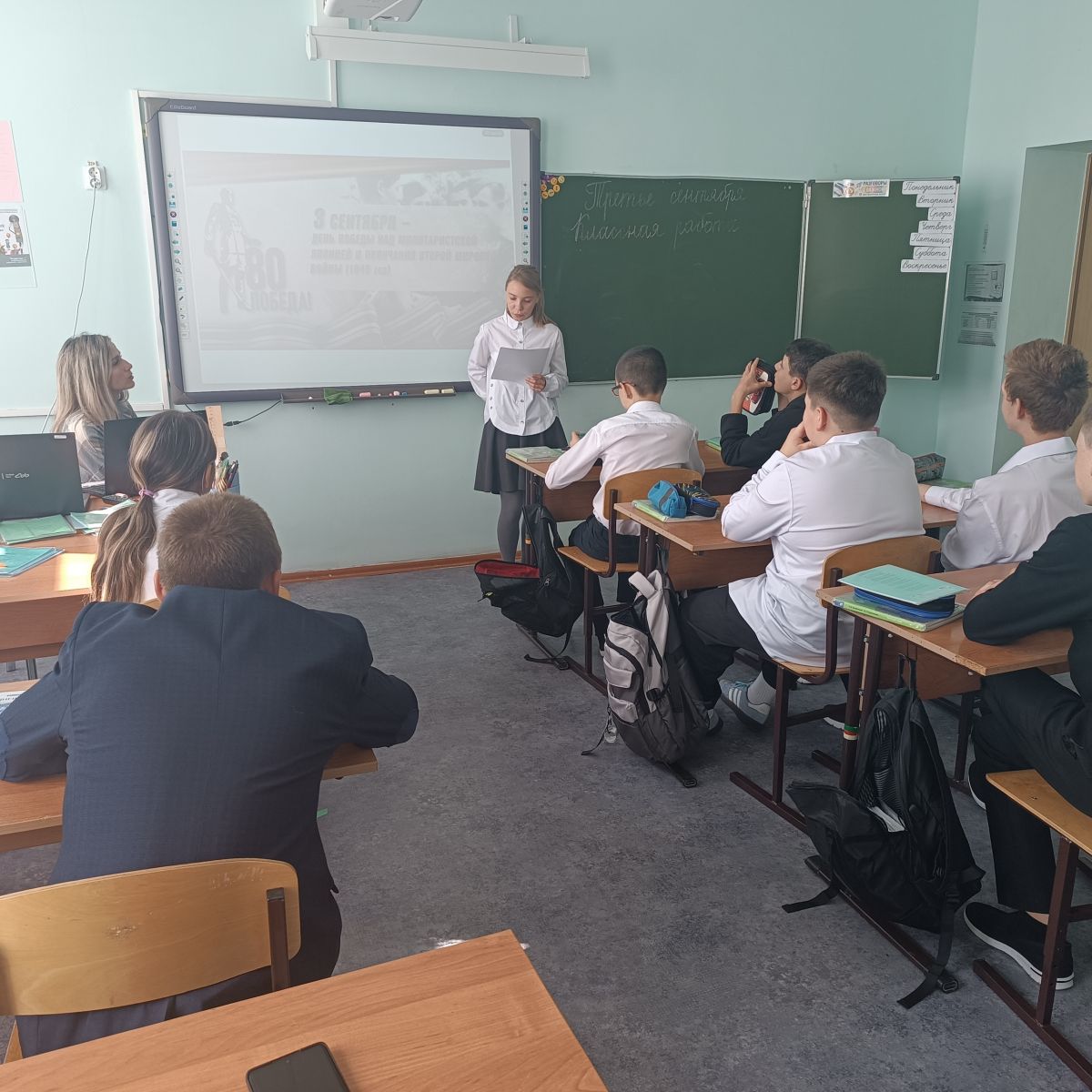 Сегодня в нашей школе в честь этой памятной даты советником директора по воспитанию совместно с активом школы прошел урок памяти «Подвиг народа" для учащихся 7 класса. В ходе мероприятия ребята обсудили тему памятного события.