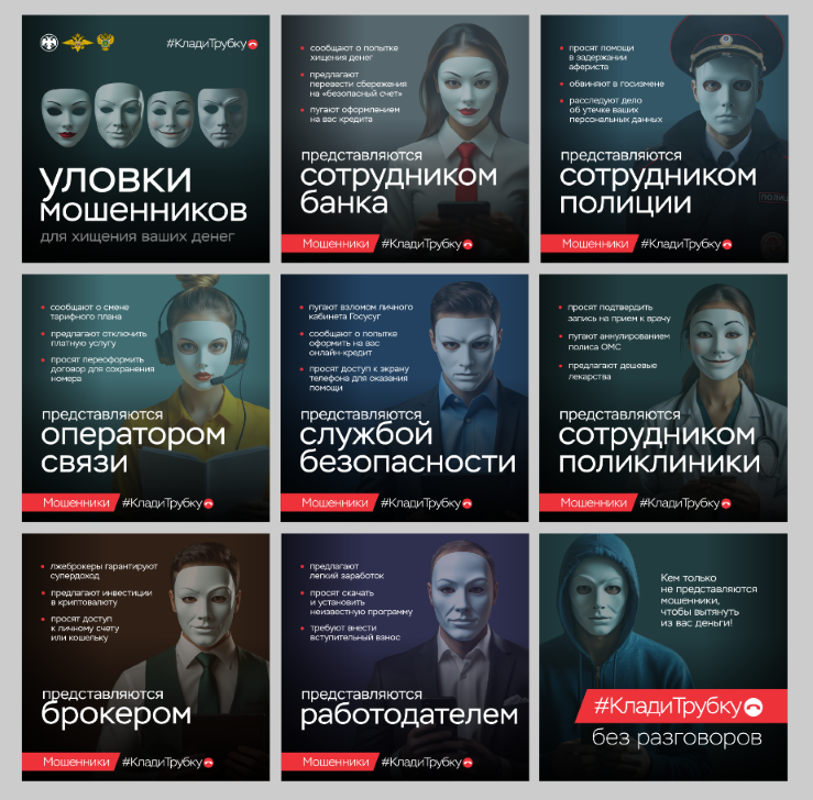 Генеральной прокуратурой Российской Федерации совместно с Банком России разработаны цифровые плакаты в целях повышения уровня информированности населения о действиях лиц, вводящих в заблуждение в целях хищения денежных средств!
