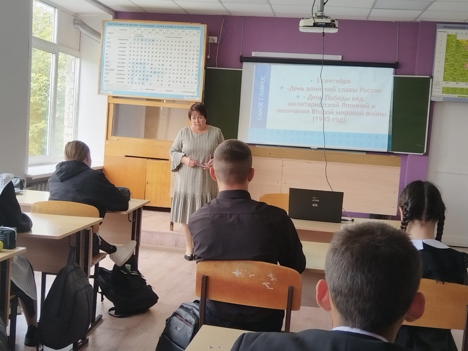4 сентября 2025 года в рамках учебного предмета «Основы безопасности и защиты Родины» прошел тематический урок, приуроченный ко Дню воинской славы России.