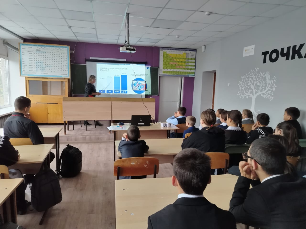 Сегодня в нашей школе прошла "Урок мужества". Была проведена онлайн встреча с участником СВО. Он показал и рассказал ученикам про свою жизнь, про то как они живут в настоящее время, показал ребятам свои блиндажы.
