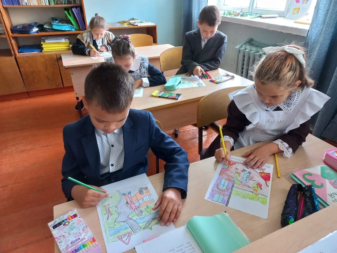В период с 18 по 22 сентября в школе прошли мероприятия по безопасности дорожного движения. Обучающиеся 1-4 классов провели урок безопасности на тему "Веселые правила дорожного движения", посмотрели презентацию, читали книги о правилах дорожного движения, рисовали. В конце урока им были вручены памятки " Будь внимателен на дорогах".