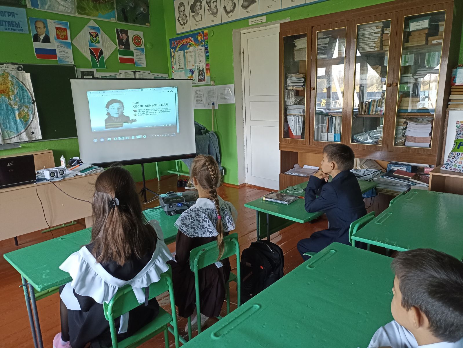 Сегодня урок был посвящен 100-летию со дня рождения Зои Космодемьянской. Любовь и беззаветное служение Отечеству лежат в основе героических поступков наших соотечественников на протяжении всей многовековой истории России. Многие юноши и девушки (в том числе и Зоя Космодемьянская) совершали военные и трудовые подвиги во имя любви к своему народу и Отечеству. Подвиг Зои Космодемьянской — символ борьбы за Победу, память о храброй девушке и напоминание о доблести десятков и сотен её сверстников, которые защищали свою Родину. Традиция защищать то, что ты любишь (Родину, родителей, свой дом, друзей...) и по сей день особо актуальна среди жителей нашей страны.