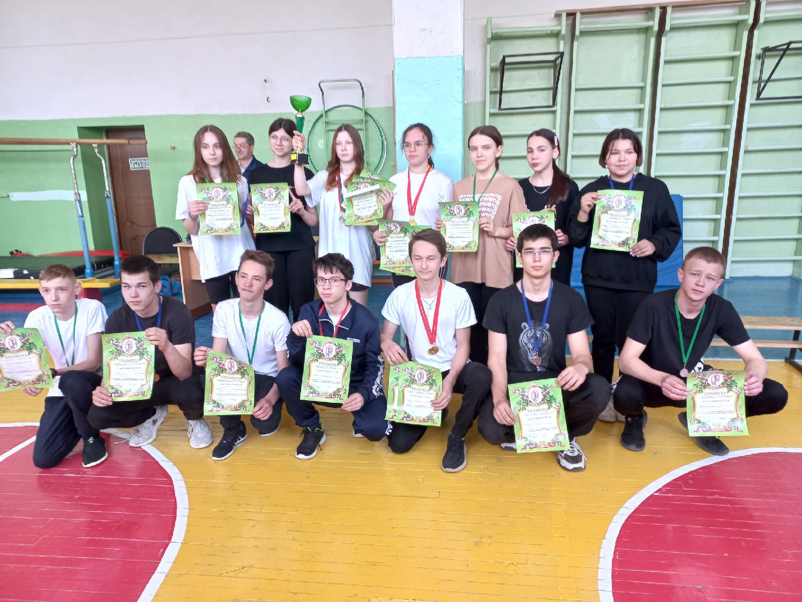 Сегодня в Тимяшевской СОШ прошли соревнования по спортивному многоборью. Учащиеся 8-9 классов участвовали в соревнованиях по многоборью и заняли следующие места: Сабирзянов К. первое место по стрельбе, Рахимова К. второе место по стрельбе, Тухбатов Р. третье место по стрельбе, Галиуллина Э. четвертое место по подъему туловища из положения лежа (пресс). Общекомандное второе место.