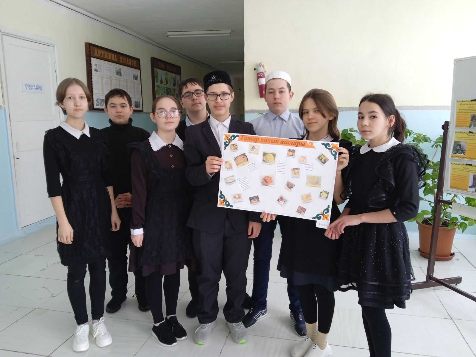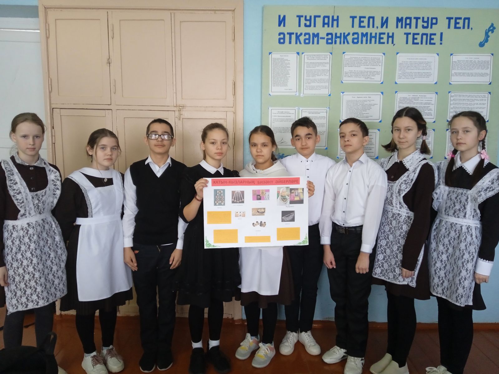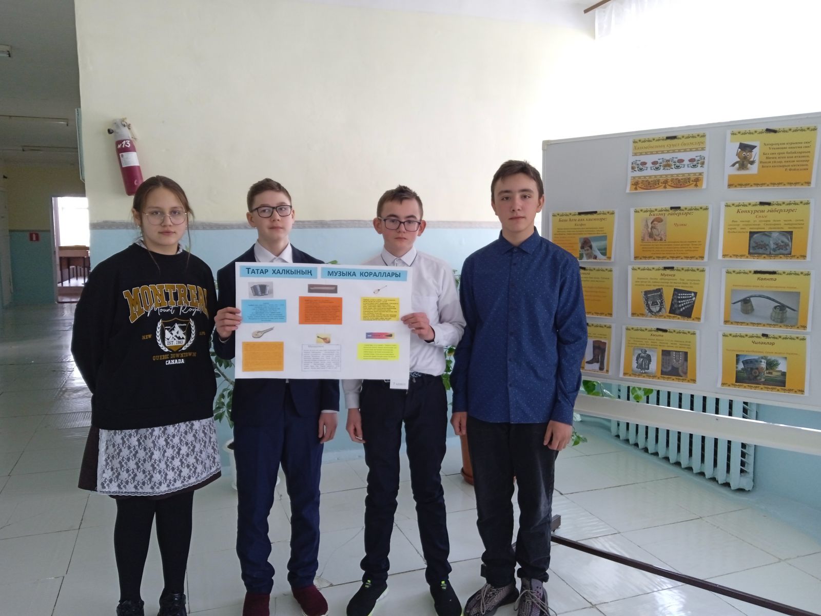 Атналыкның бүгенге көне “Халкымның күңел җәүһәрләре” исеме астында узды. 5-9 класс укучылары стена газеталары чыгардылар. Һәр класска аерым тема тәкъдим ителгән иде: 5 класс – “Татар халкының бәйрәмнәре”, 6 класс – “Хатын-кызларның бизәнү әйберләре”, 7 класс – “Татар халкының музыка кораллары”, 8 класс – “Татар халык ашлары”, 9 класс – “Татар халкының милли киемнәре”. Бу эш укучыларда милли мирасыбыз белән кызыксынуны арттыруга ярдәм итә.