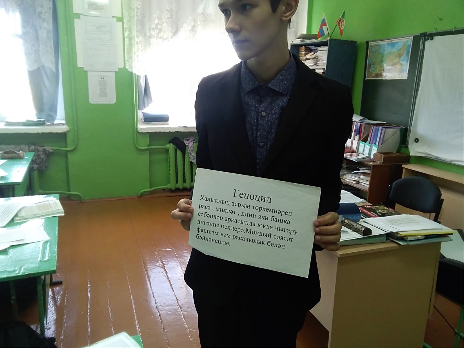 19 апреля в школе прошел урок, приуроченный ко Дню единых действий в память о геноциде советского народа нацистами и их пособниками в годы Великой Отечественной войны 1941 – 1945 годов. Учащиеся 8-9 классов смотрели видеофильм «Без срока давности» и написали Письма в будущее «Нельзя забыть».