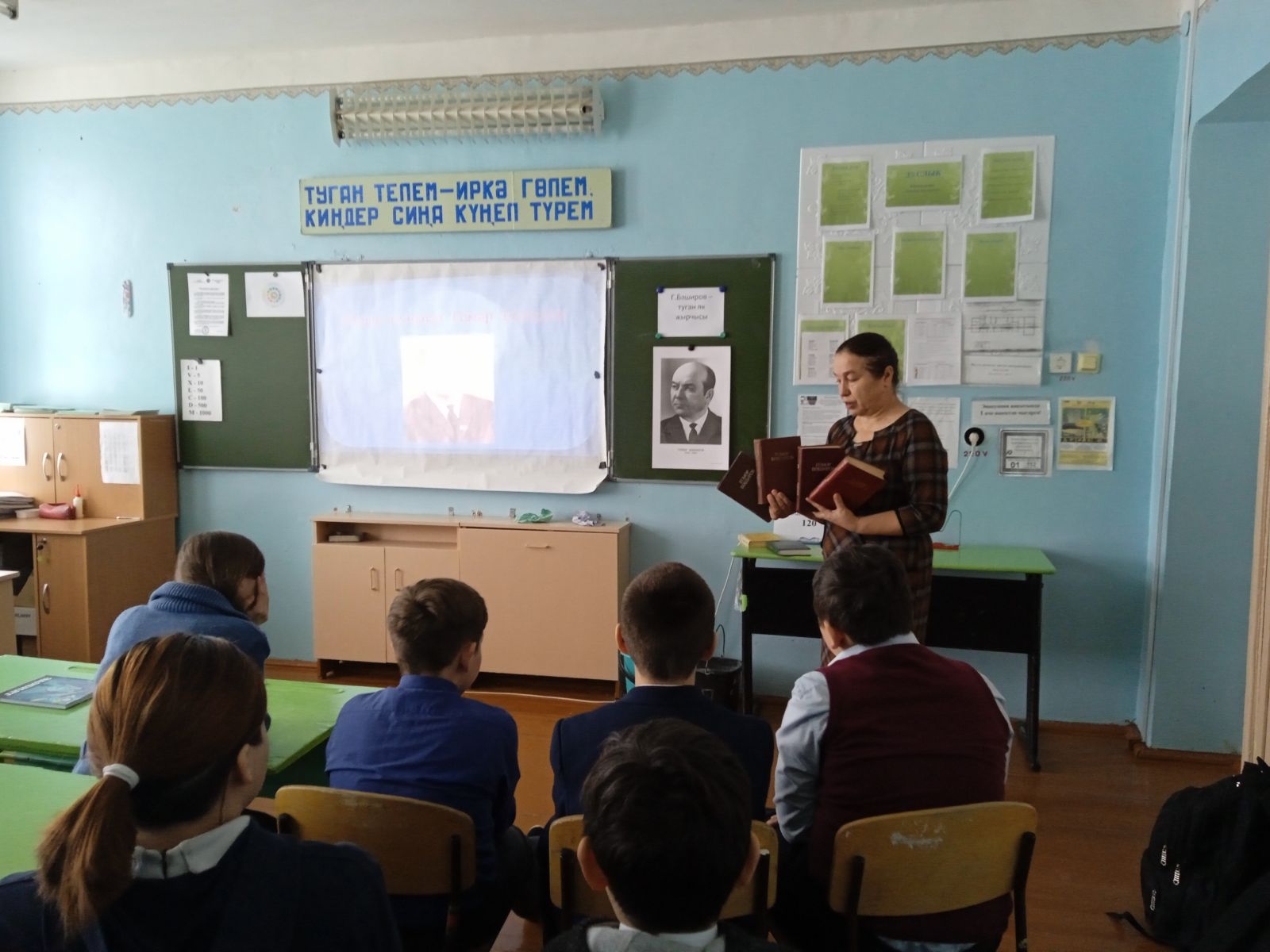 В этом году исполнилось 120 лет со дня рождения знаменитого татарского писателя Г.Баширова. В связи с этим учащиеся 5-7 классов приняли участие в мероприятии, посвященном Г.Баширову. Они познакомились с жизнью и творчеством писателя, читали отрывки из его произведений. Обучающиеся погрузились в атмосферу нашей истории, обычаев и традиций, получили положительные эмоции и новые знания.