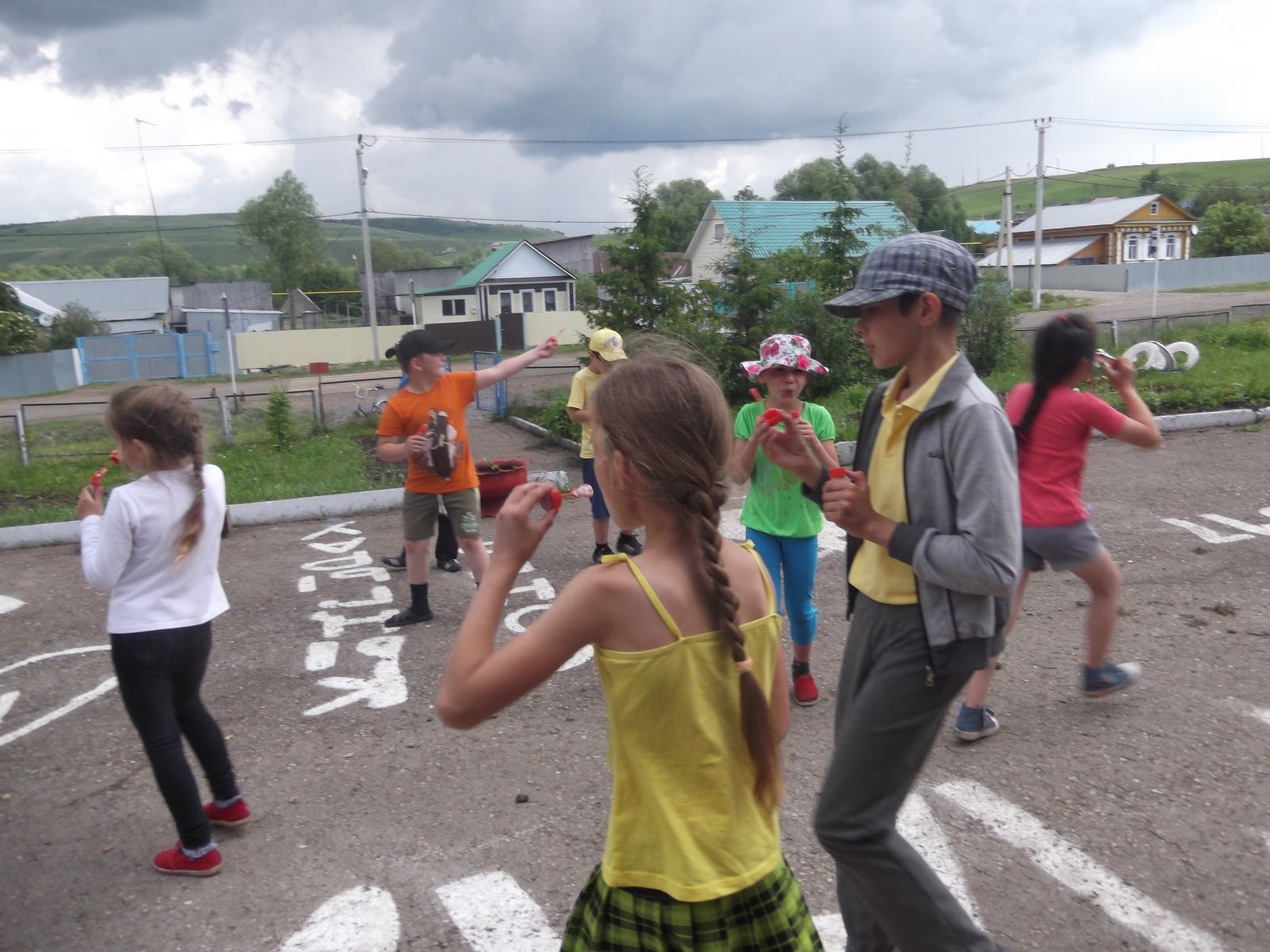 Сегодня воспитатели пришкольного лагеря устроили для ребят веселый праздник! Ребята побывали в королевстве "Мыльных Пузырей". Выдували мыльные пузыри, рассказали про них стихи, участвовали в конкурсах: "Мыльное чудо в руке", "У кого пузырь больше?". Играли в подвижные игры: "Пузырьки вверх!", "Танец замерших пузырей", "Лови по команде" и т.д.