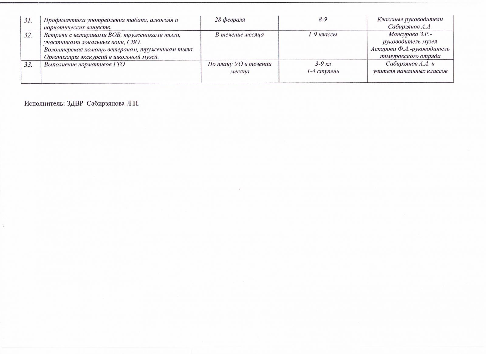 План военно-патриотического и спортивно-оздоровительного месячника 01.02.2025