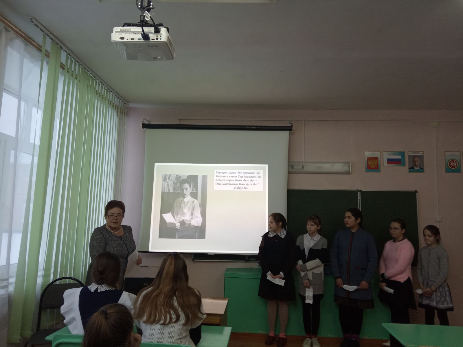 9 нчы февраль — Татарстанның халык шагыйре, Татарстан Республикасының халык язучысы Фәнис Яруллинның туган көне. Шул уңайдан мәктәптә әдипкә багышлап, татар теле укытучысы Хаҗипова М.М. «Җилкән — җилдә, кеше тормышта сынала» дигән чара үткәрде. Чара барышында әдипкә багышланган презентация тәкъдим ителде. Укучылар шагыйрьнең шигырьләрен сөйләделәр, аның тормыш юлы һәм иҗаты буенча җанлы әңгәмә булды.9 февраля — день рождения Фаниса Яруллина — народного поэта Республики Татарстан, лауреата премии имени Тукая и М. Джалиля. Учитель татарского языка и литературы Хазипова М.М. провела мероприятие под названием «Испытание жизнью». Во время мероприятия ученикам была предложена презентация, посвящённая жизни и творчеству Ф. Яруллина, ученики читали его стихи, отрывки из рассказов и повести «Упругие паруса».